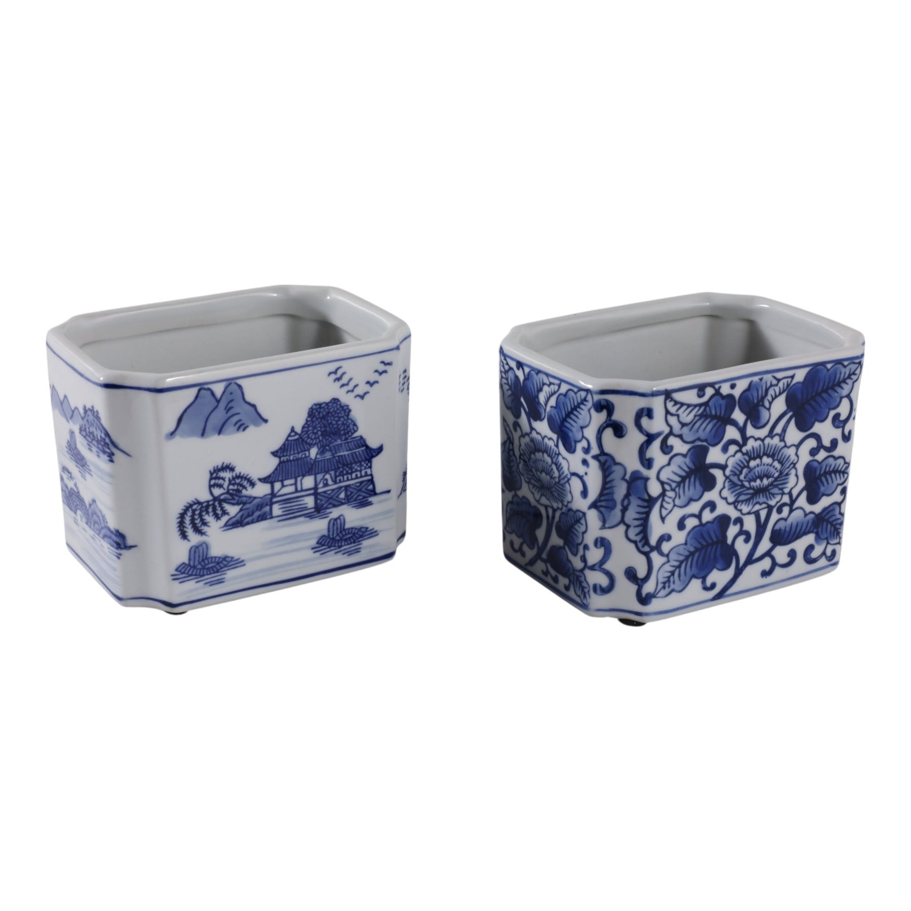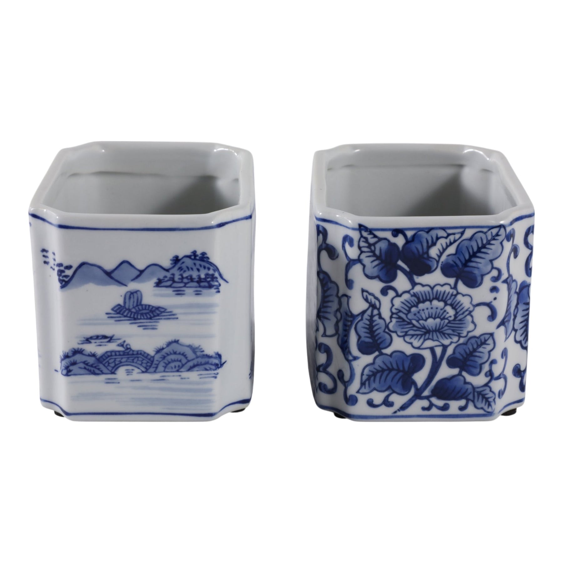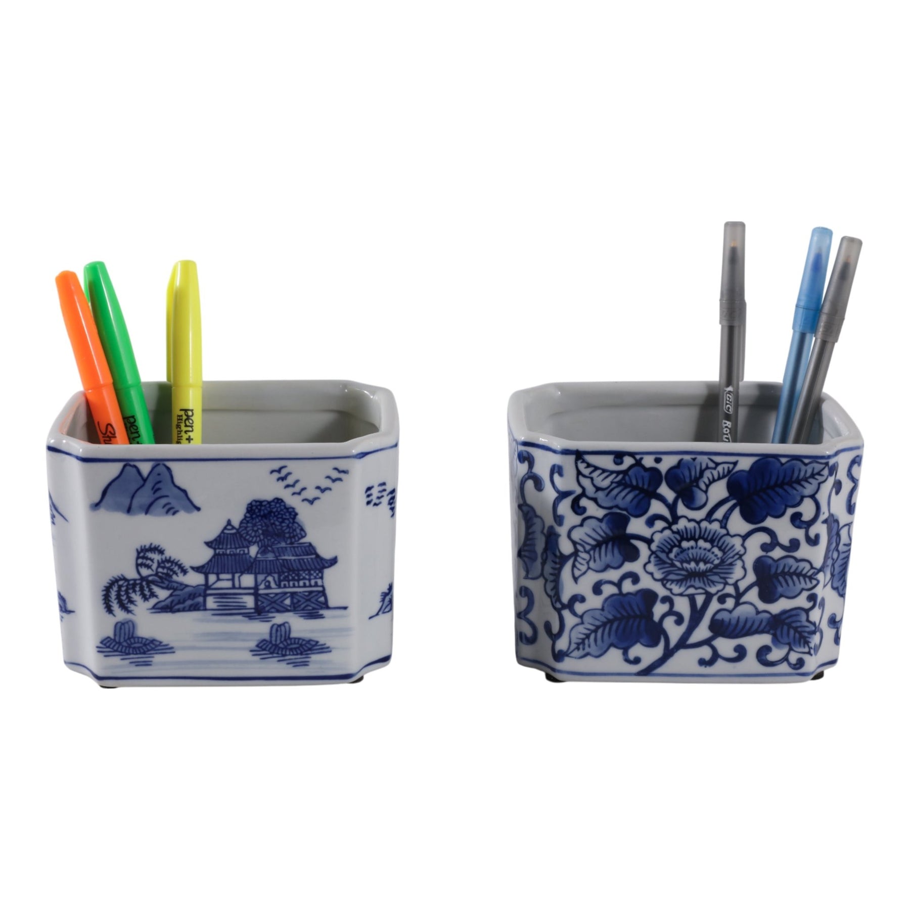 S/2 5x4" Chinoiserie Pencil Cups, Blue/white - Al Rugaib Furniture