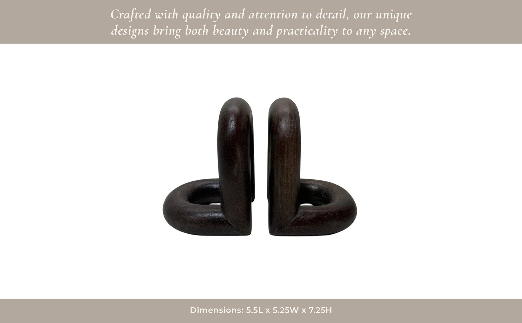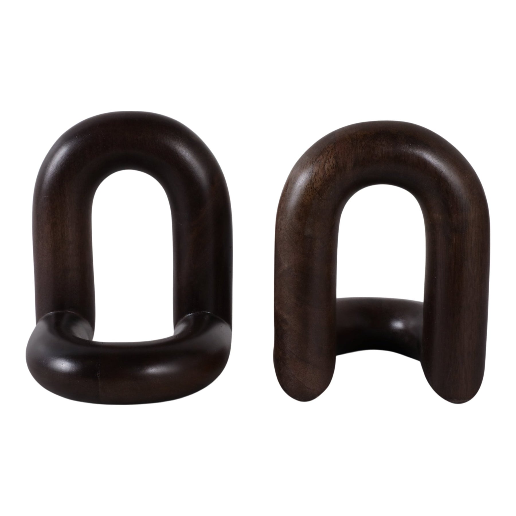 S/2 7" Loopy Wood Bookends Set, Dark Brown - Al Rugaib Furniture