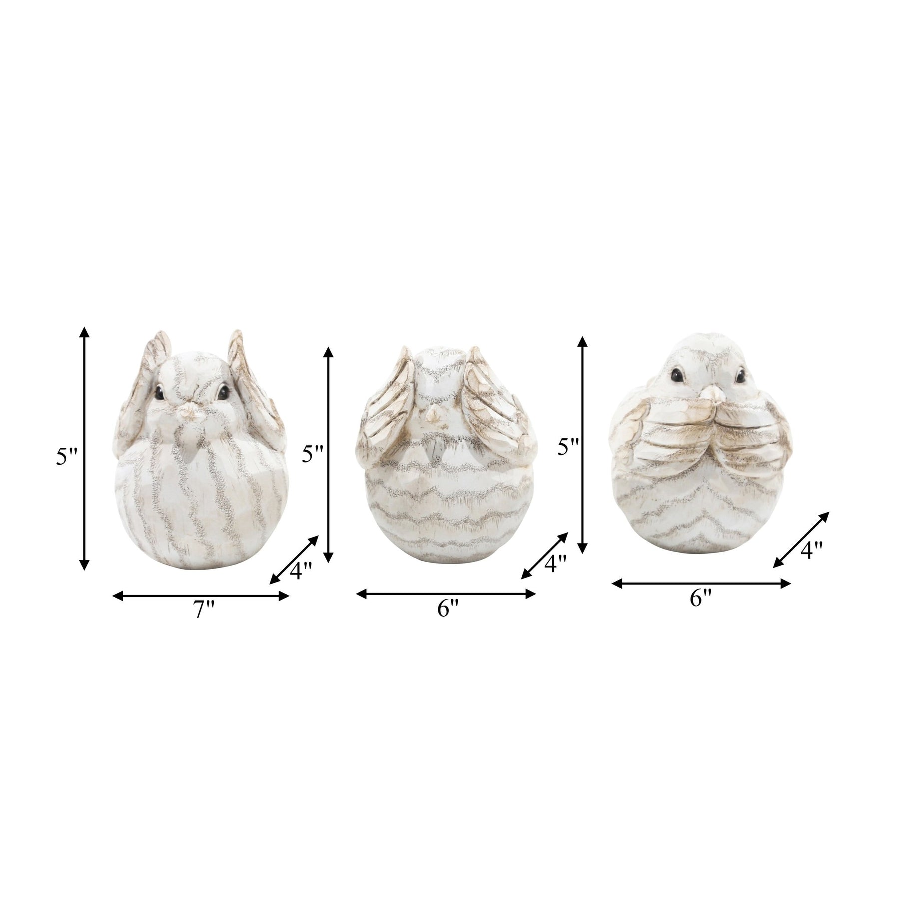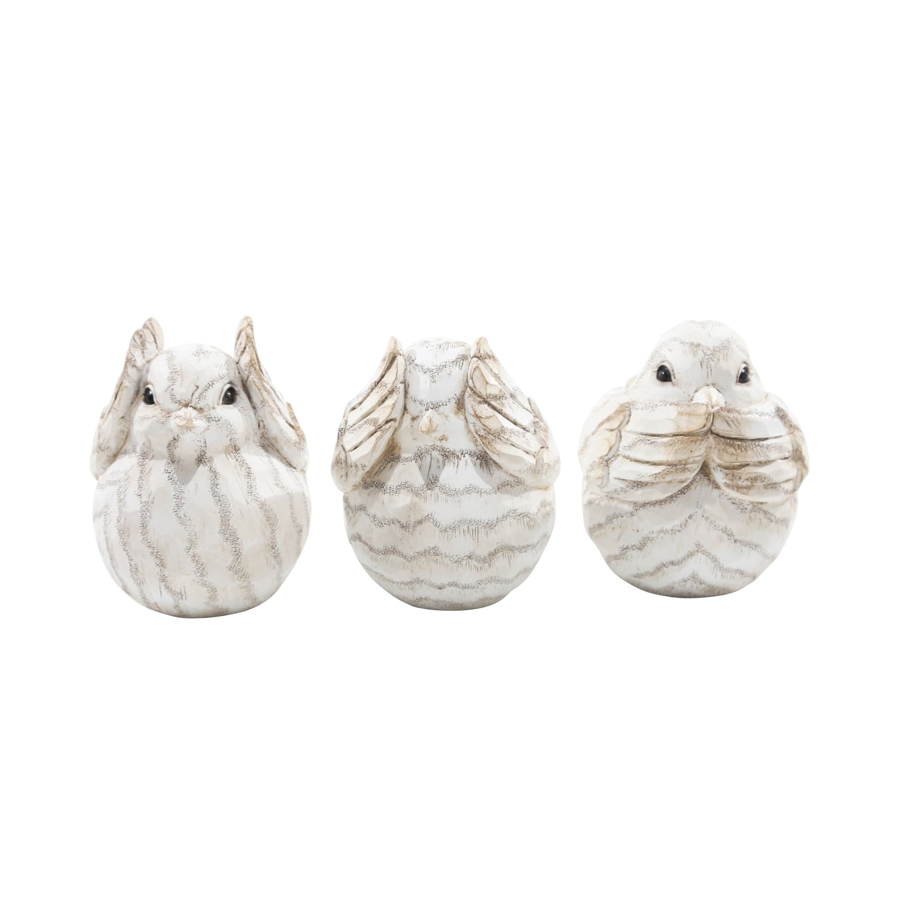 S/3 RESIN DECORATIVE BIRDS 6",CREAM - Al Rugaib Furniture