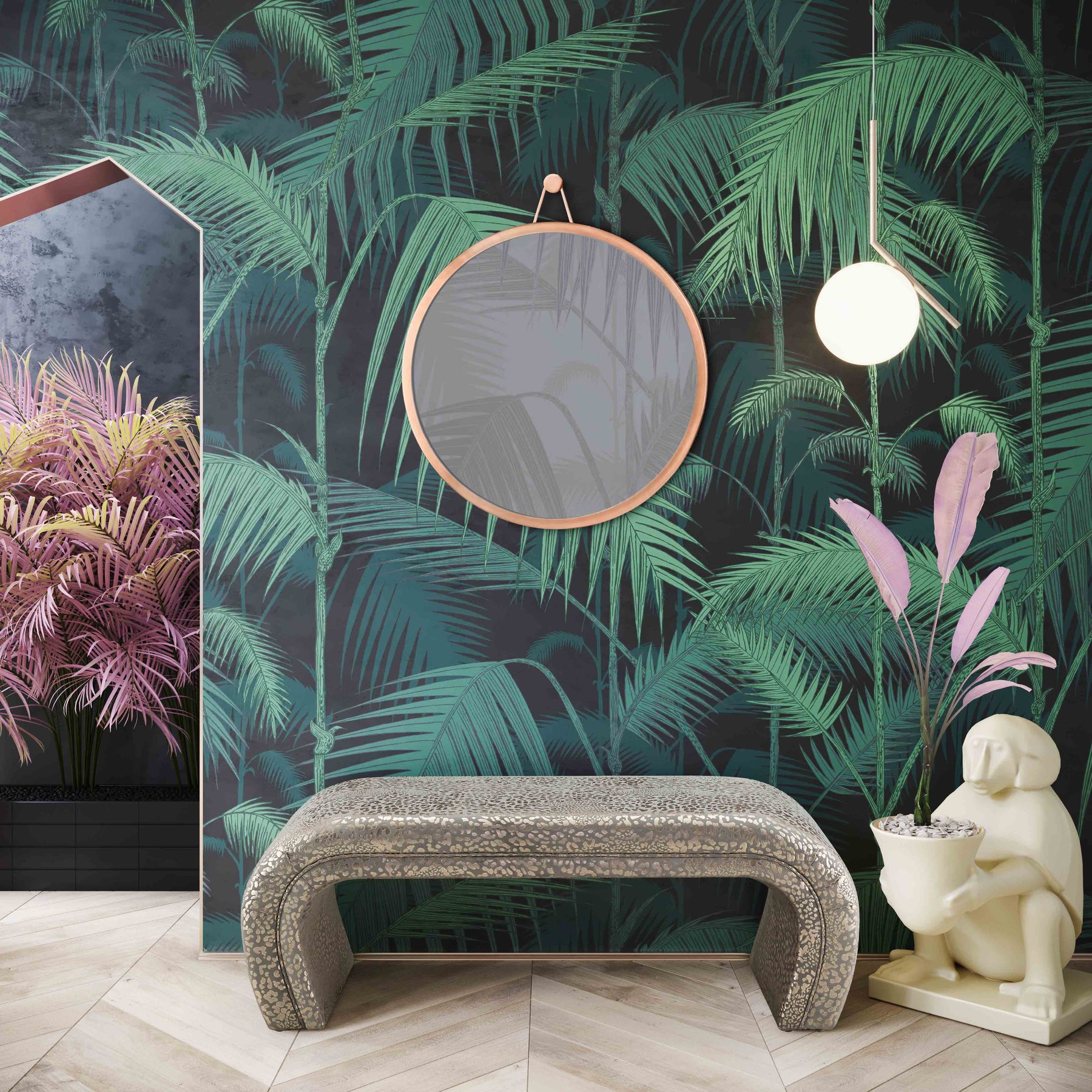 To say we're excited for the Kenya bench would be a major understatement. This modern waterfall-style bench is offered in several soft-hued velvets as well as a gilded leopard print for the bold. Regardless of which option you choose, the Kenya is sure to stand out.