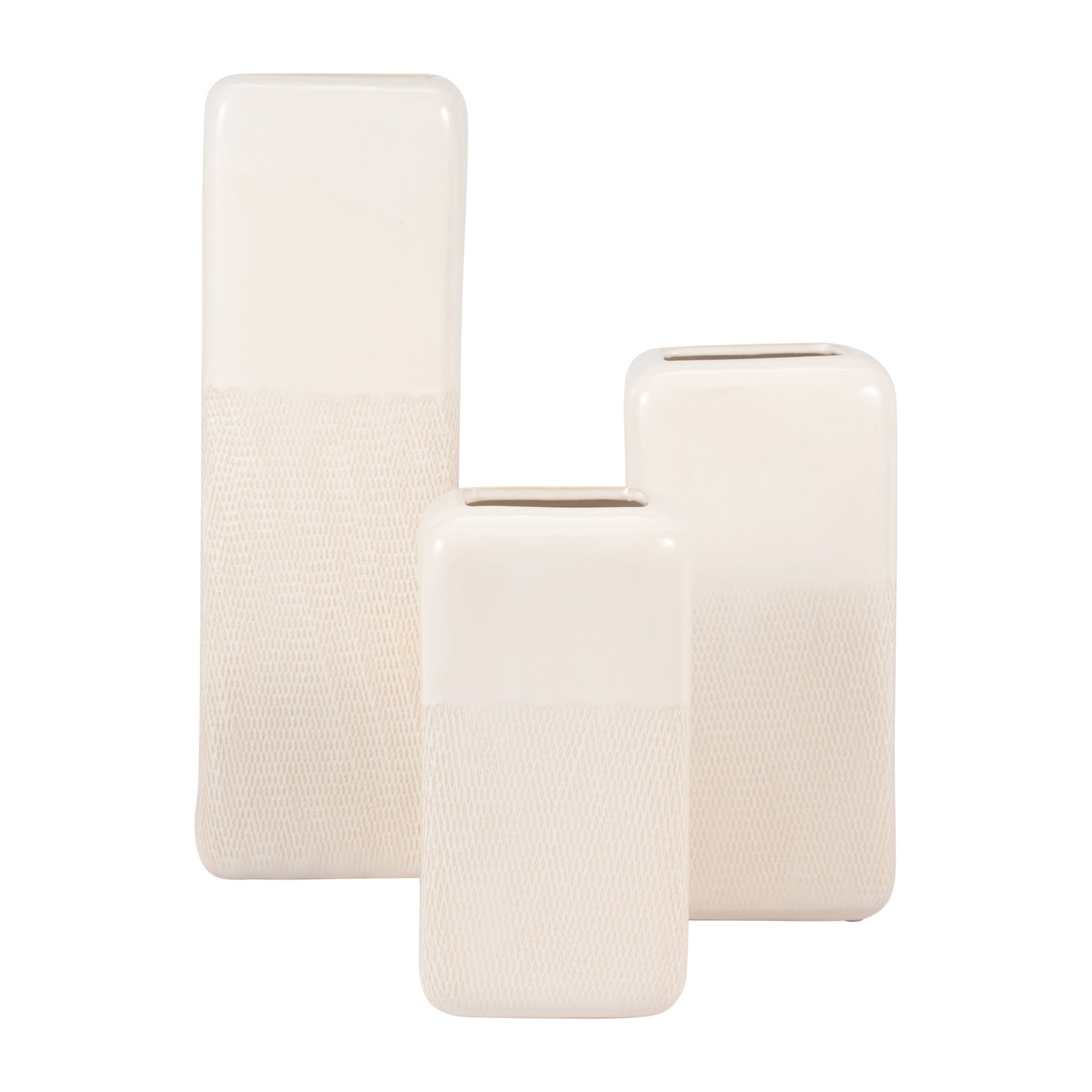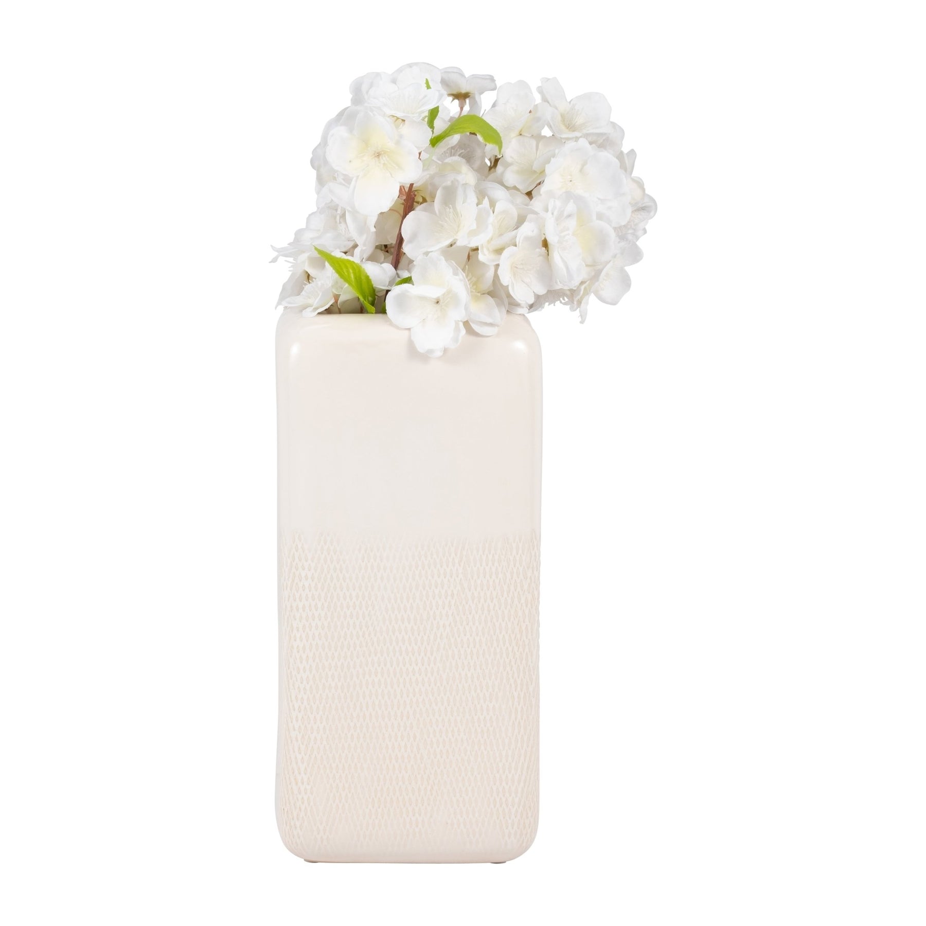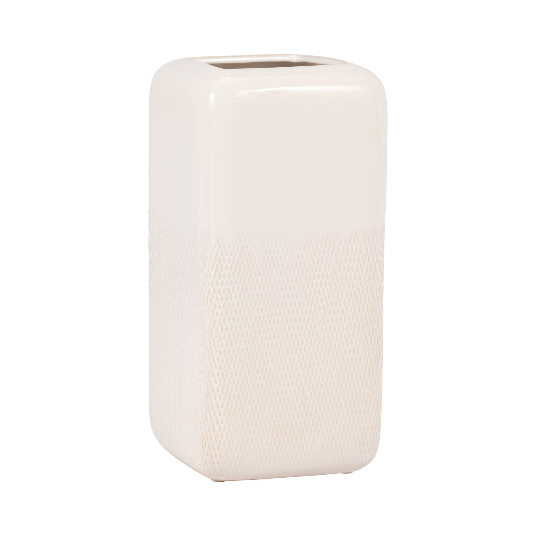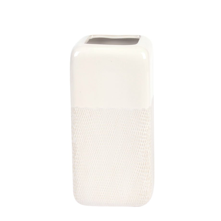 CER, 12" SQUARED GROOVED VASE, IVORY