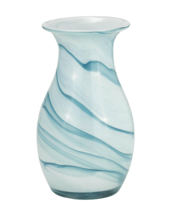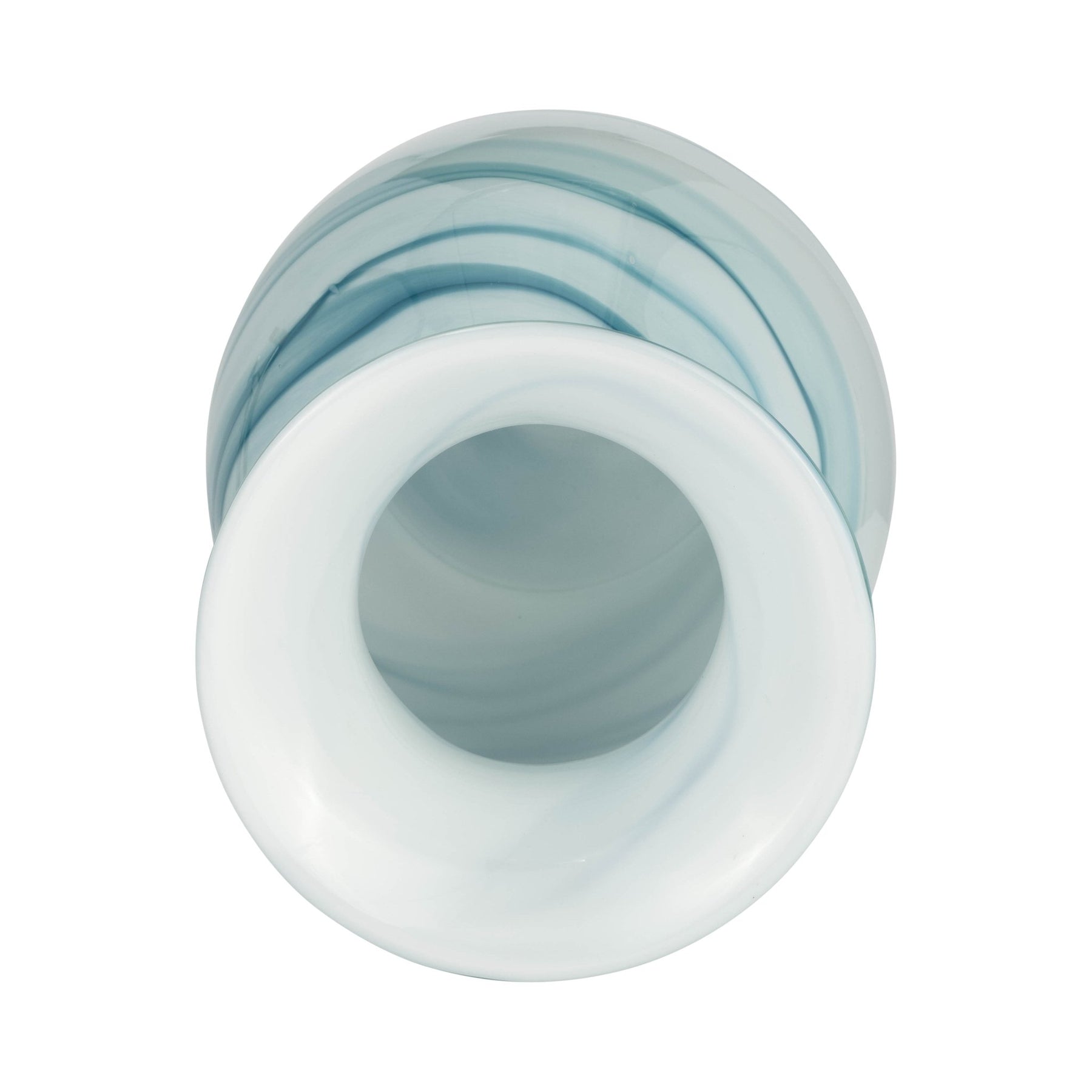 GLASS, 11"H 2-TONE VASE, BLUE/WHITE