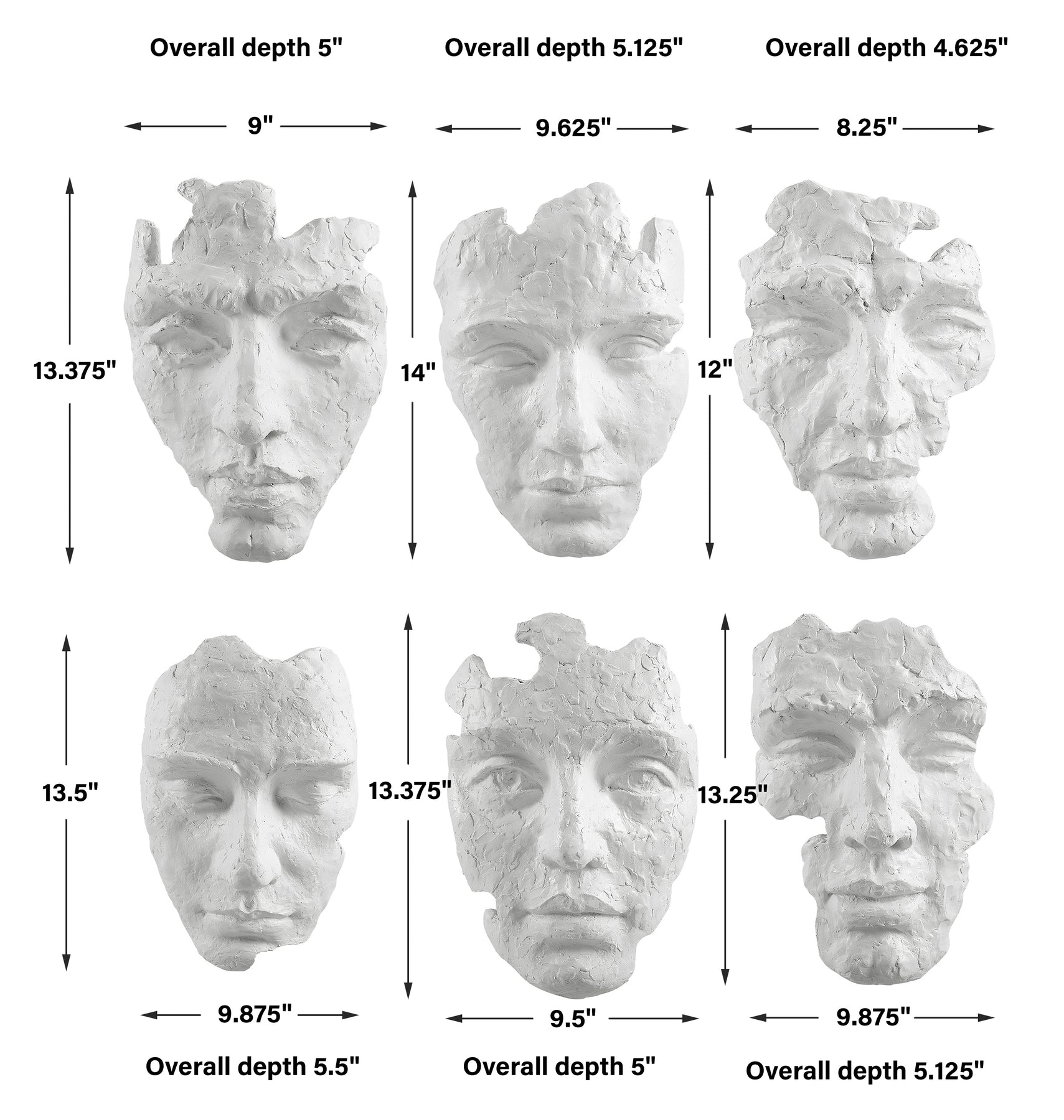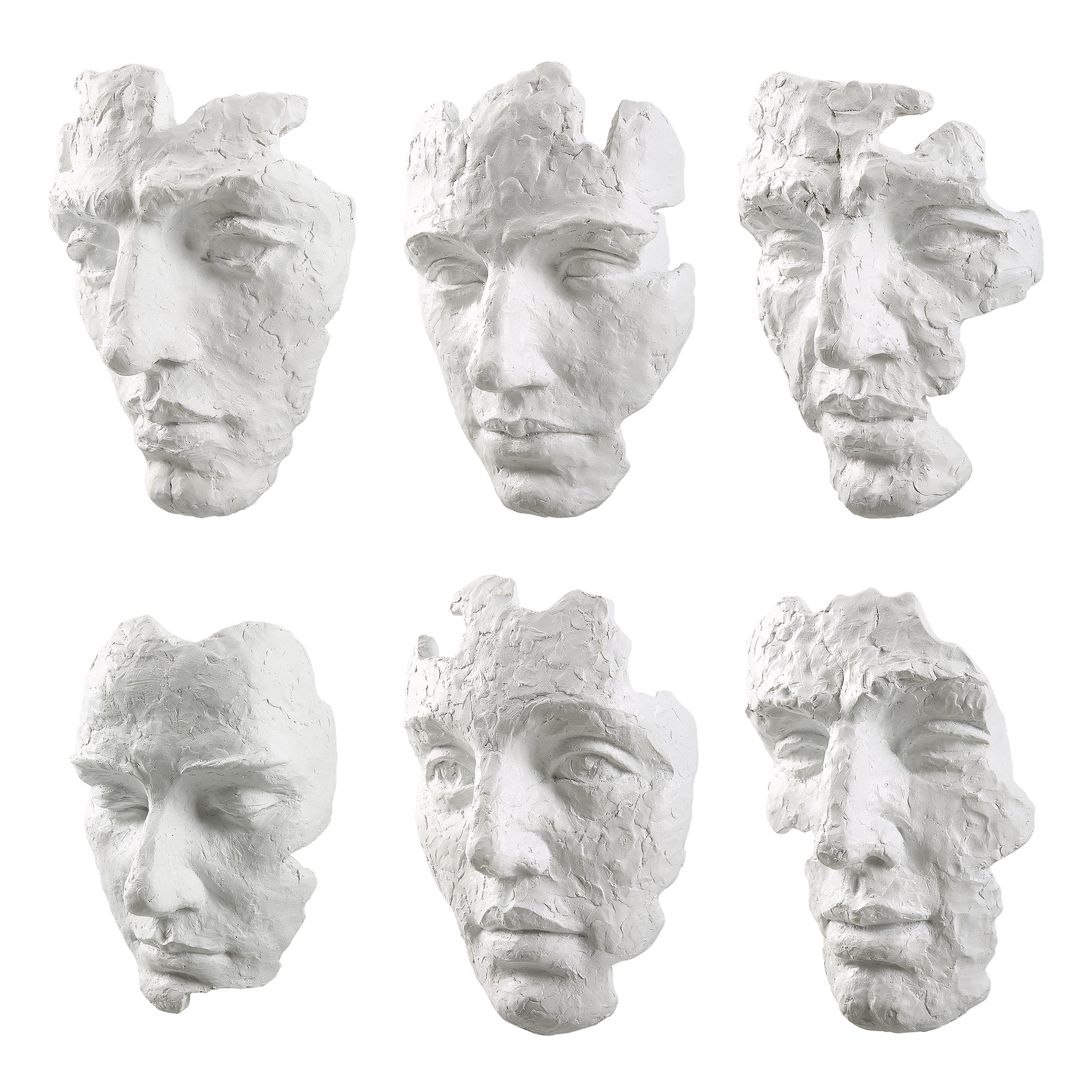 Inspired by works from modern art galleries, these masks are handcrafted with a sculpted look in a matte white finish with noticeable textural details.