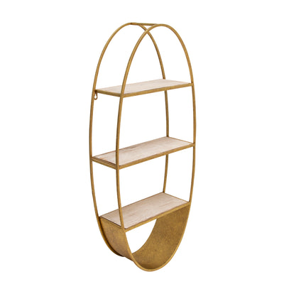 METAL / WOOD 3 TIER WALL SHELF, GOLD