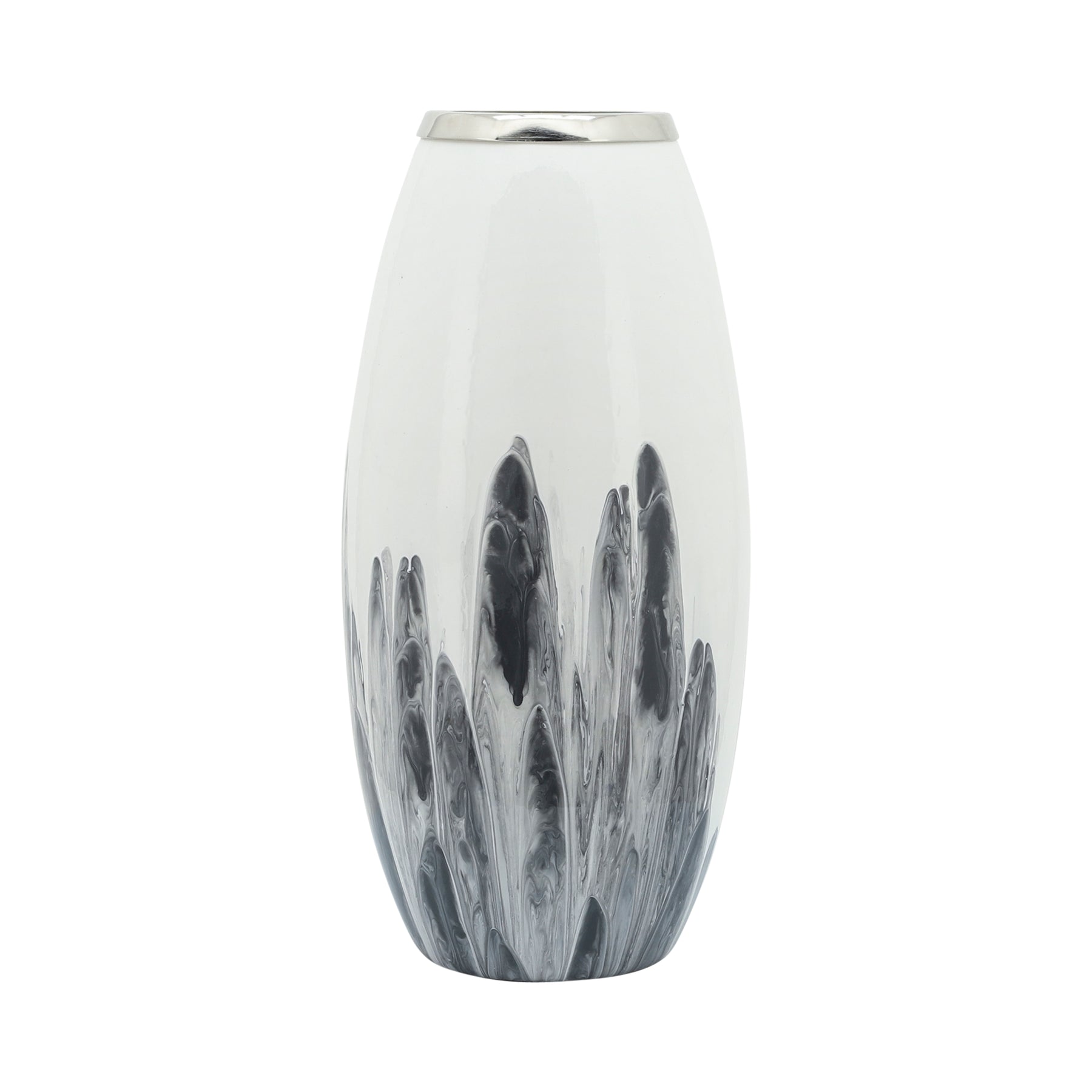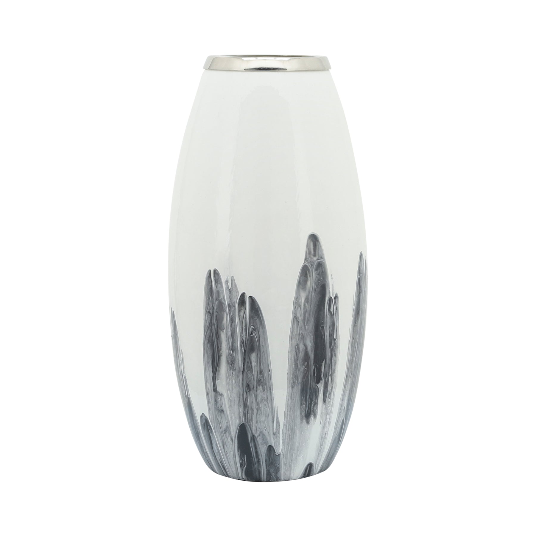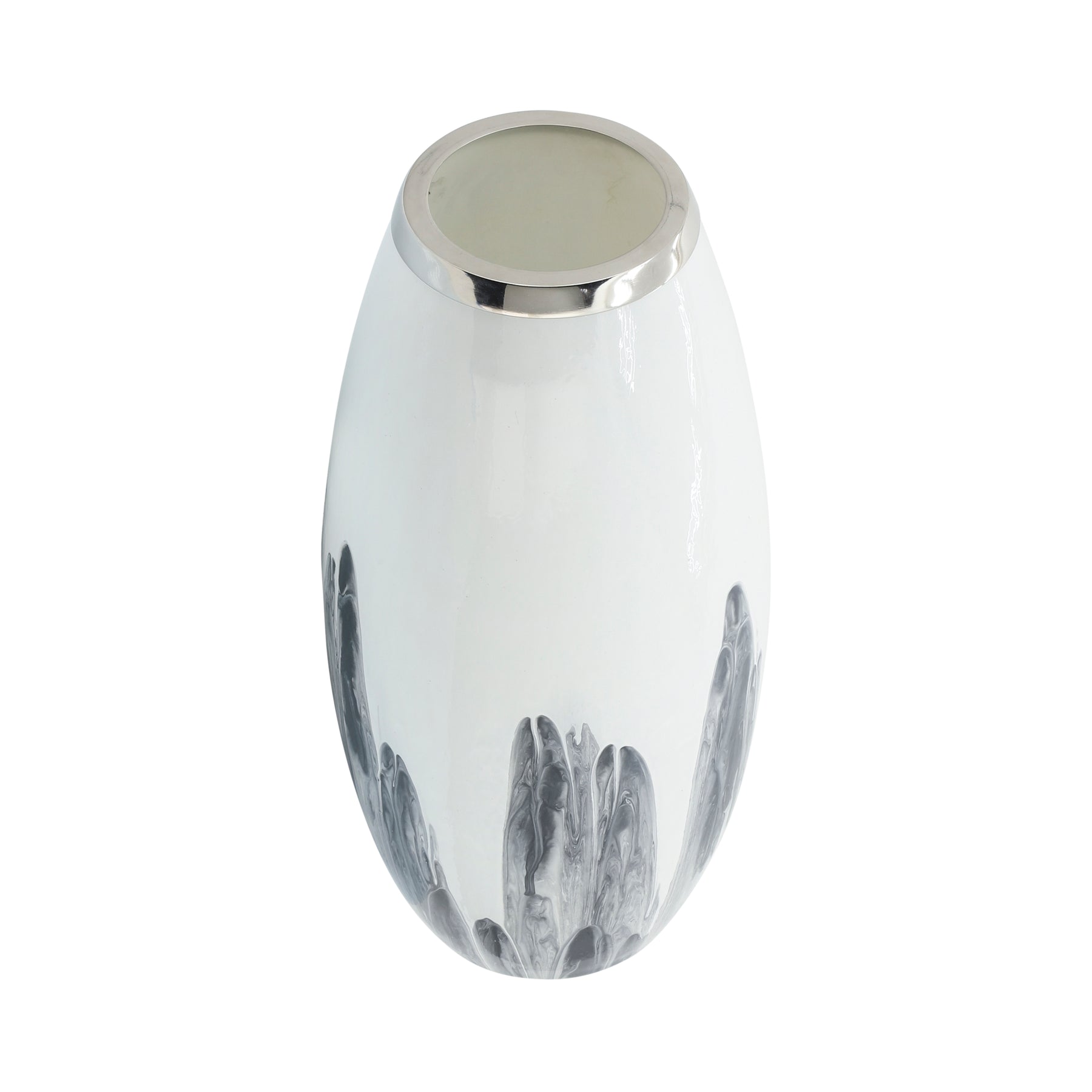 Glass, 18"H Vase W/ Metal Ring, White