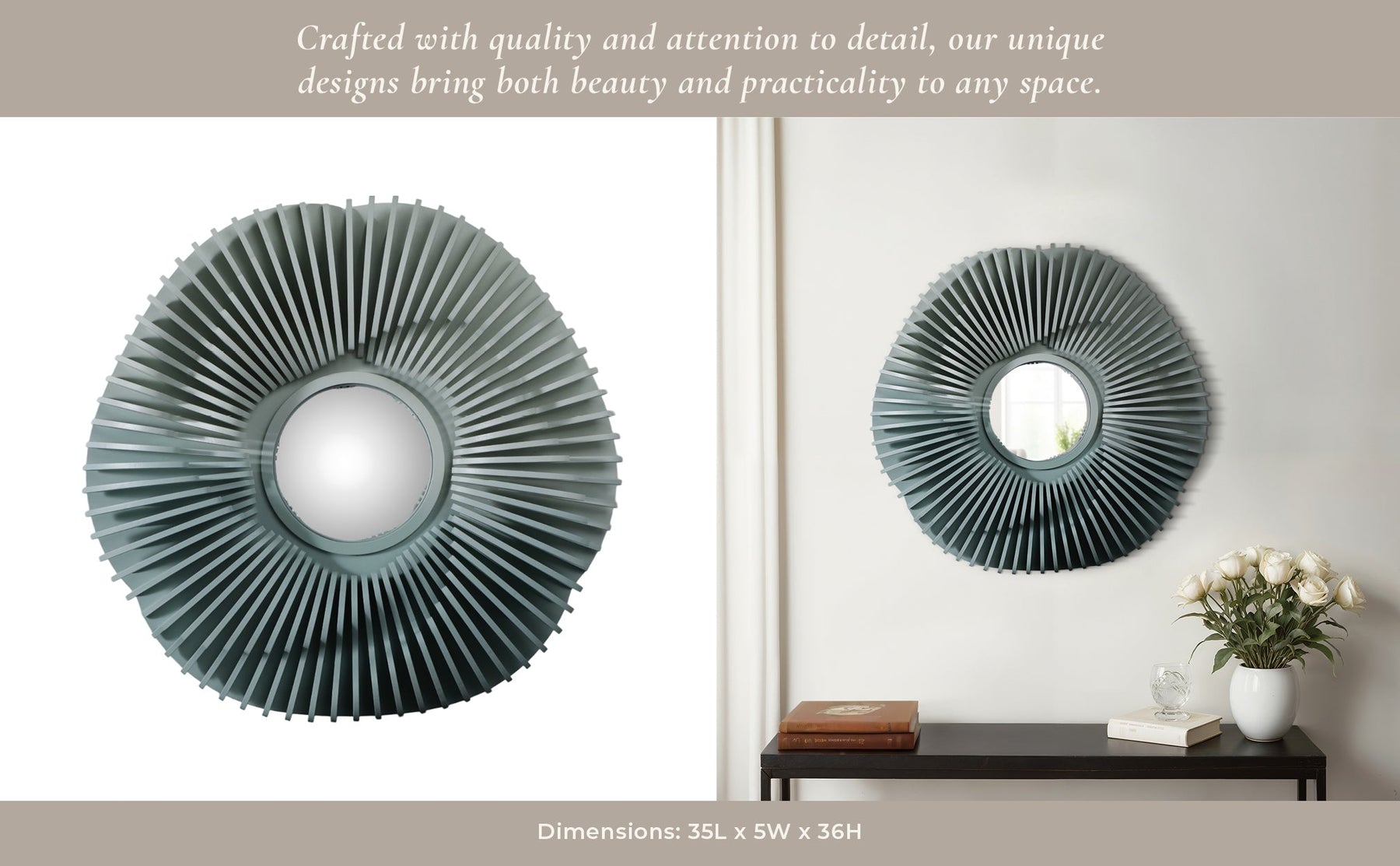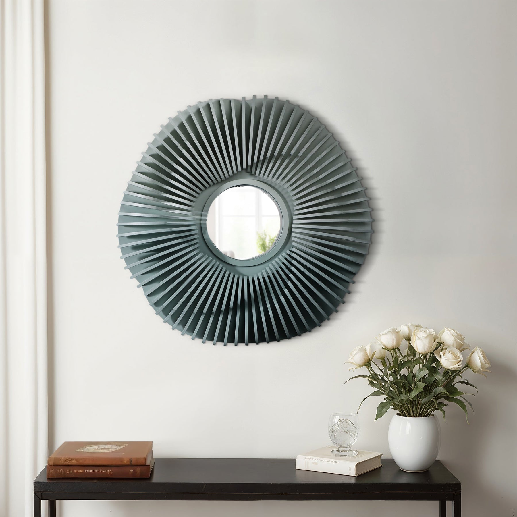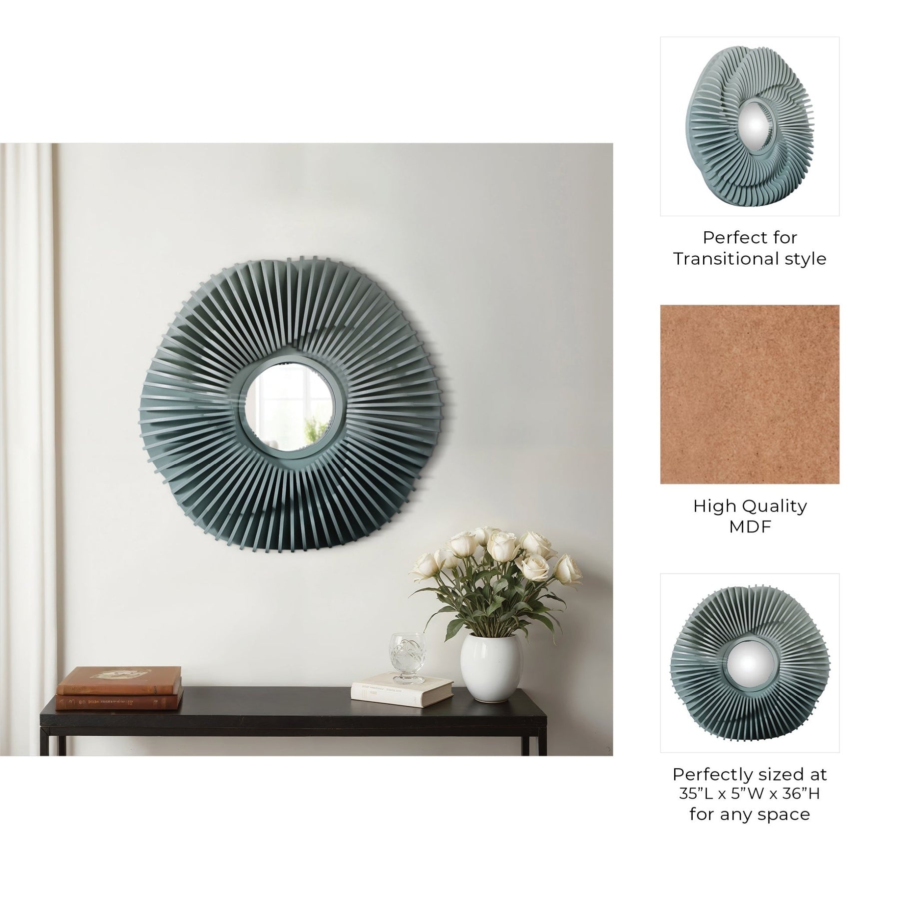 35" Wood Sterga Wall Mirror, Gradient Green - Al Rugaib Furniture