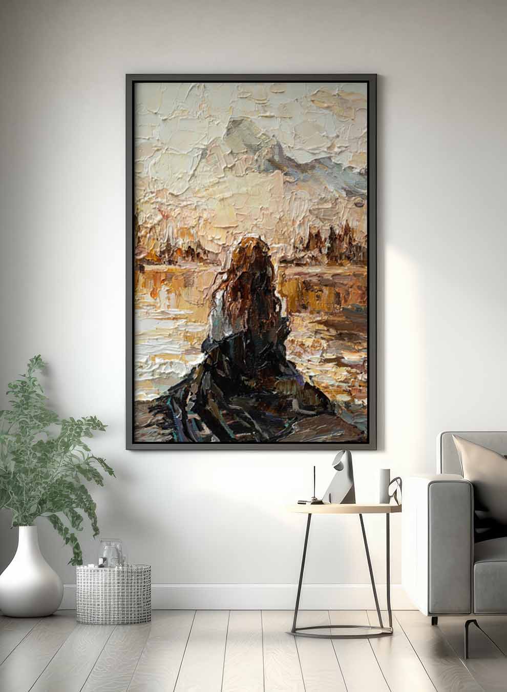 Canvas Wall Art Stretched Over Wooden Frame with Black Floating Frame