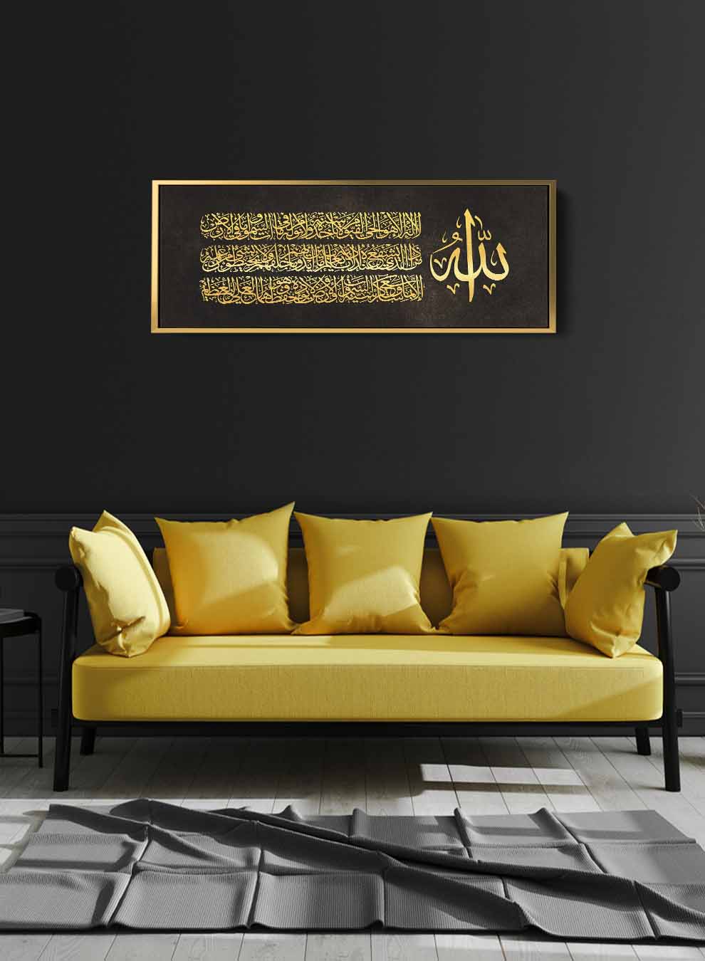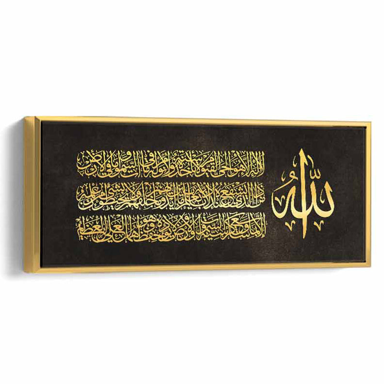 Canvas Wall Art Stretched Over Wooden Frame with Gold Floating Frame and islamic Quran Ayat Al-Kursi Painting