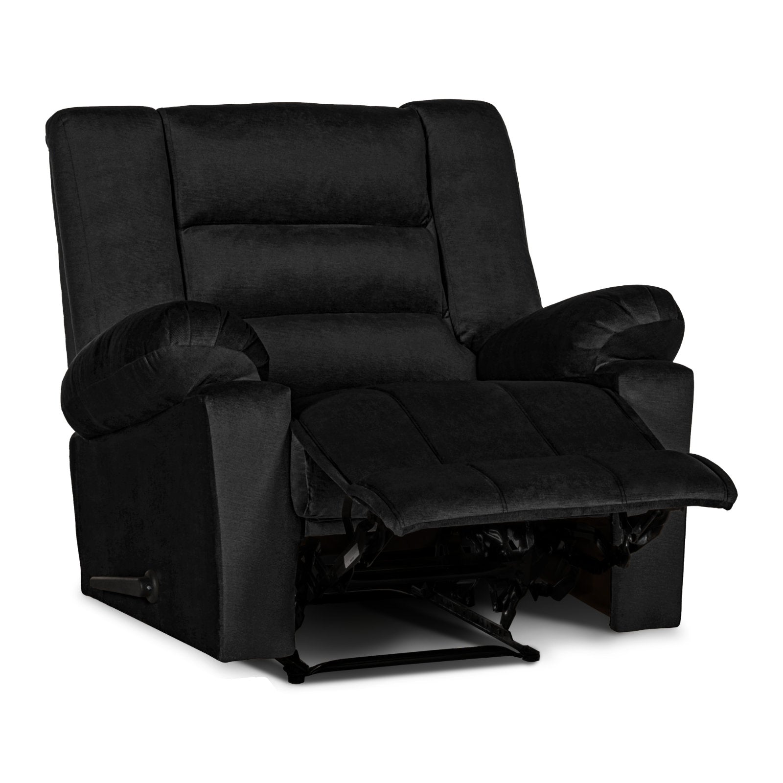 Velvet Upholstered Rocking Recliner Chair With Bed Mode From In House - Black - Nice 02