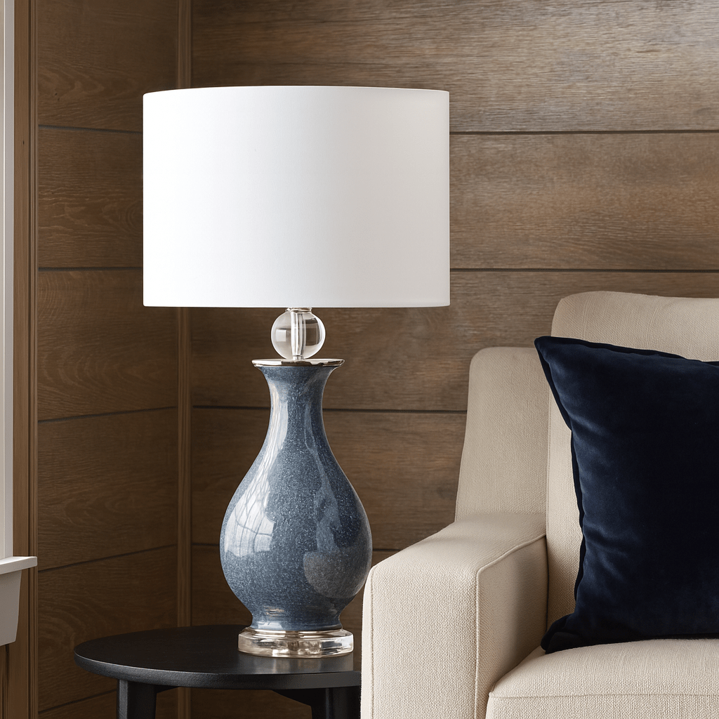 Jarvis Table Lamp 28"Ht.,Ceramic&Crystal Blue Crackle Fini