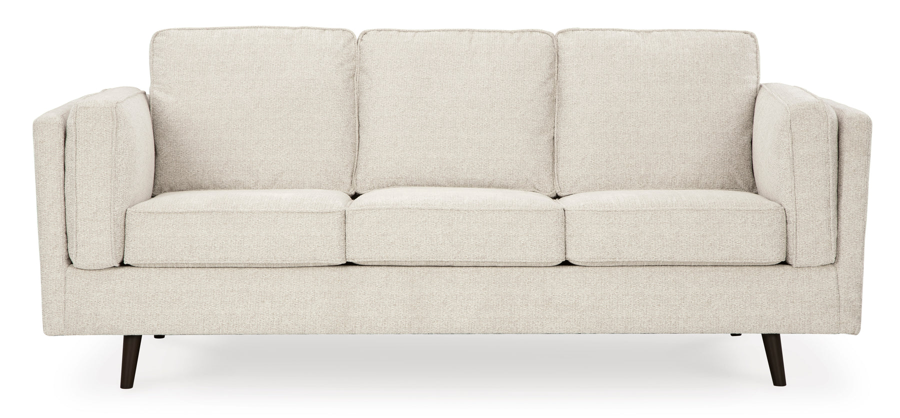 The Maimz sofa is mid-century revival done to perfection. Linear and minimalistic, the beautifully edited profile has all the retro elements you love, like sheltering arms, bolster pillows and tapered splayed legs. So casually cool, the crisp fabric upholstery brings the look right into the present.