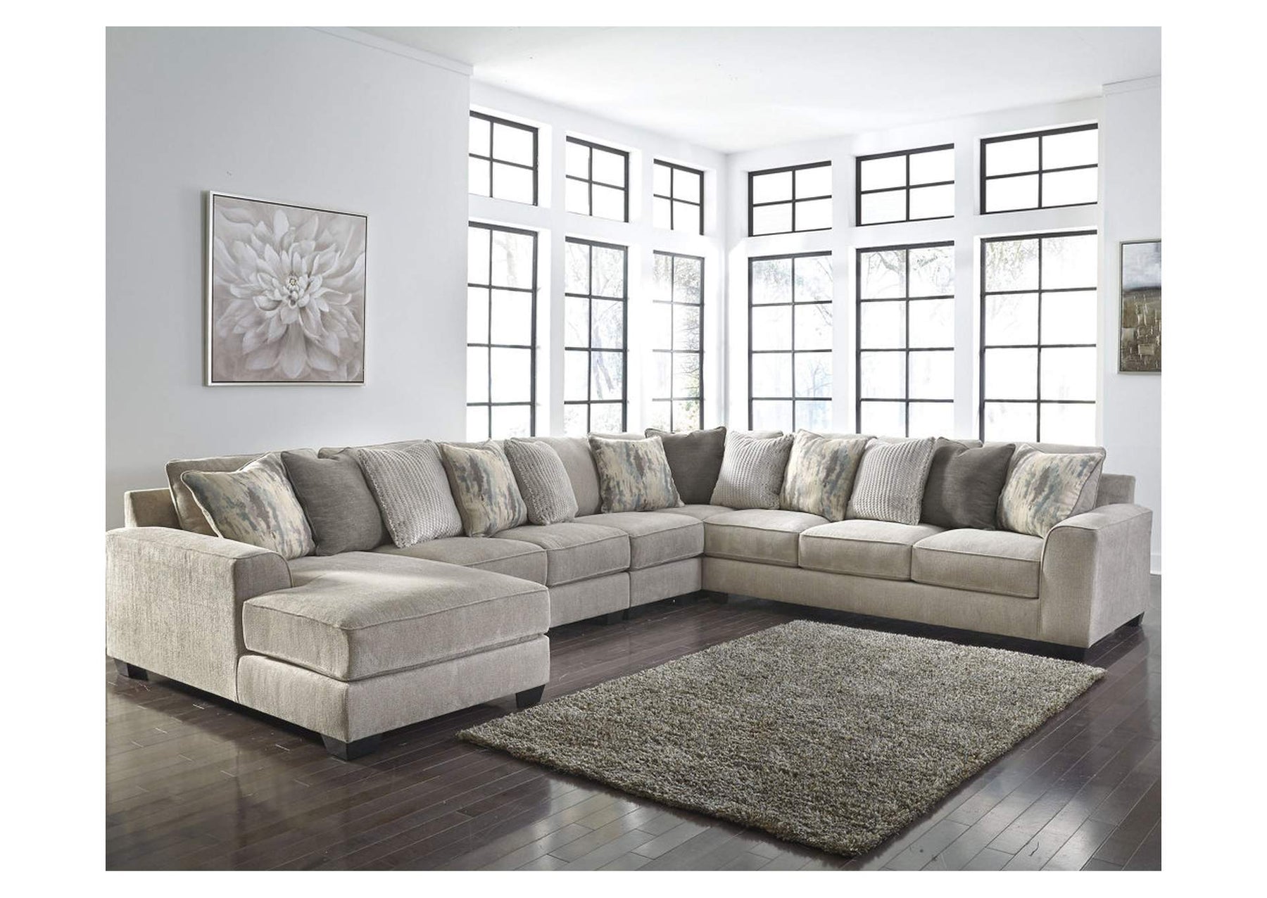 Master the art of cool, clean-lined style-loaded with sumptuous comfort-with the Ardsley 5-piece sectional. Plush and posh, this decidedly contemporary sectional is dressed to impress with wedge-cut track armrests and box cushions for a minimalist chic aesthetic. Muted-hue designer throw pillows incorporate texture and an irresistibly soft touch. The only problem? Deciding who gets dibs on the generously scaled corner chaise that makes it all too easy to curl up or stretch out.