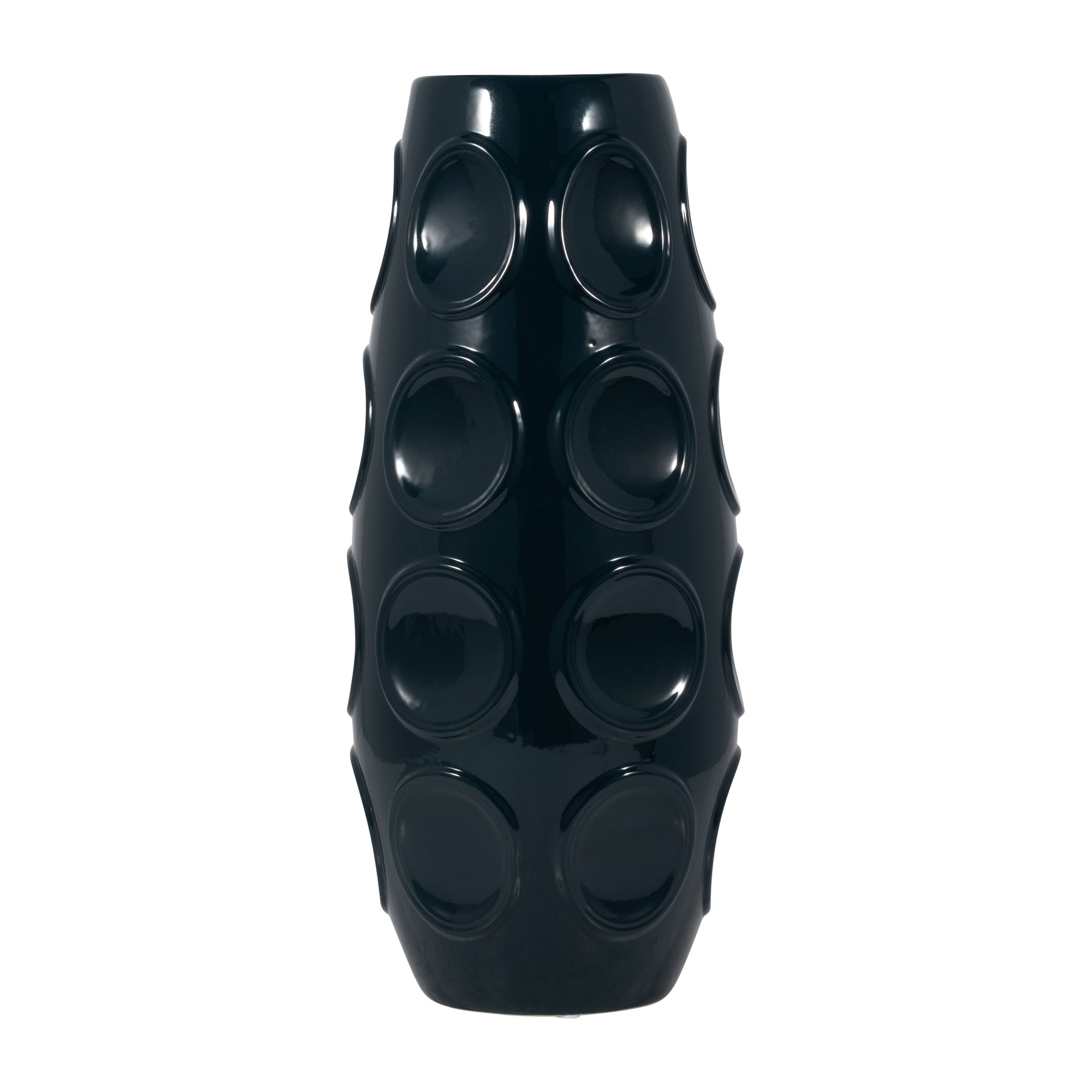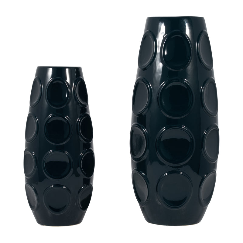 STONEWARE, 17" CIRCLE EMBOSSED VASE, NAVY