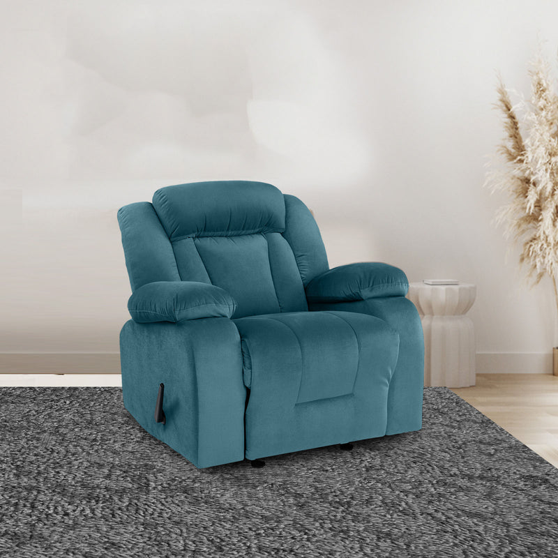 Velvet Rocking Recliner Chair - Dark Turquoise - NZ50