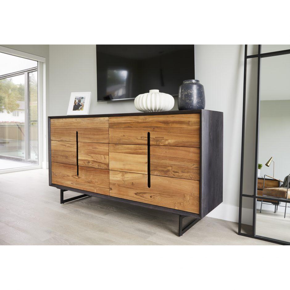 Bring warmth into your space with the Vienna dresser. Its mango wood frame with powder-coated metal legs makes it durable and modern. The dresser's six sustainably sourced, reclaimed teak wood drawer fronts provides character and ample storage space perfect for keeping essentials.